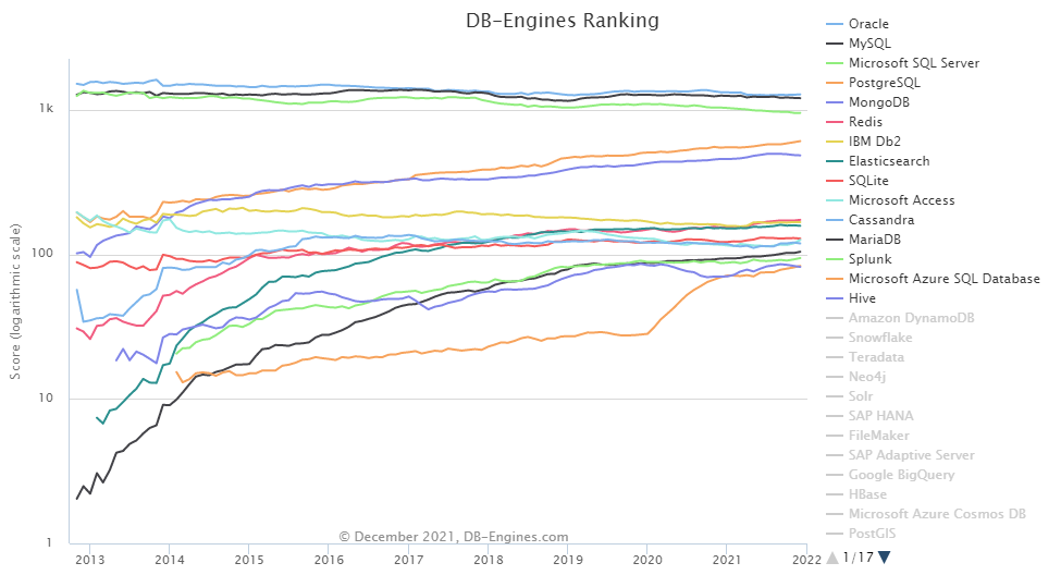 나열할 DBMS는 https://db-engines.com/en/ranking 사이트의 상위권에 있는 것들 위주로 할 생각이다.