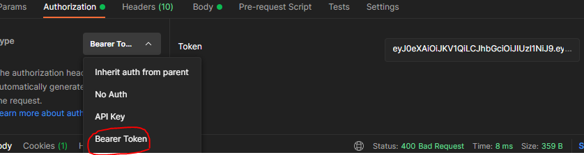 다음 access_token을 복사해서 Authorization에 Bearer Token을 선택 후 복사한 토큰을 넣어준다.