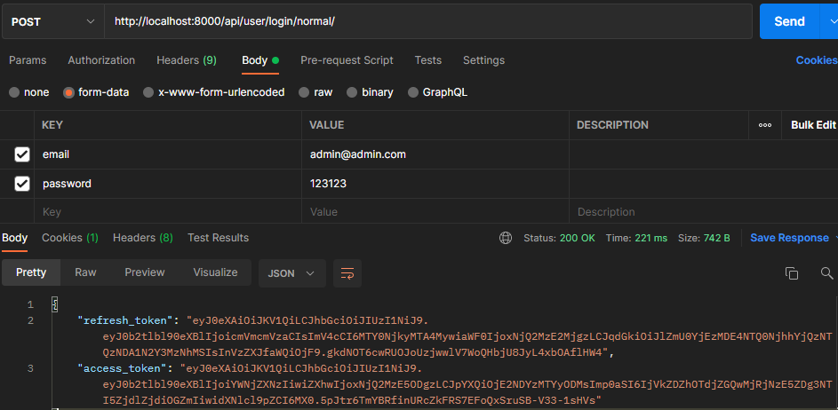 먼저 어드민 계정으로 로그인 후 토큰을 받는다.