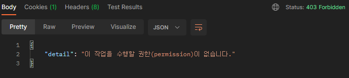 만약 어드민이 아닌 다른 계정으로 로그인한 토큰을 사용한다면 어떻게 될까?