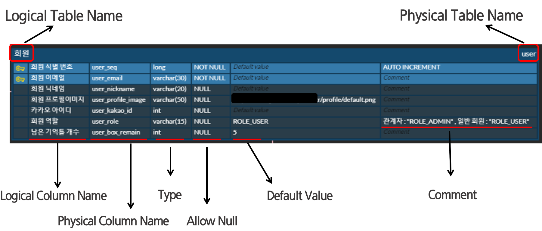 이와 같이 설정하면 아래와 같은 테이블을 생성할 수 있다.