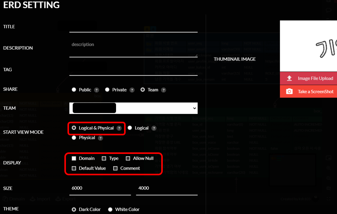팀을 생성했다면 ERD 생성하기 버튼을 눌러 생성창에서 방금 선택한 팀으로 생성하면 된다.